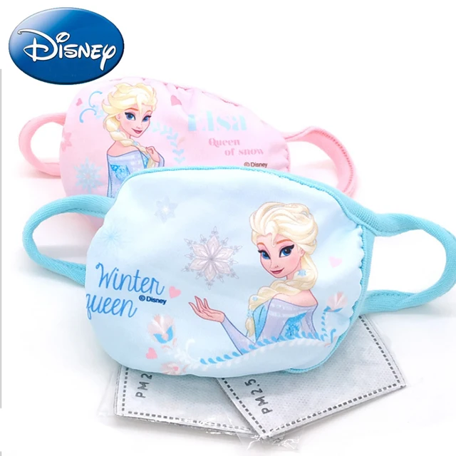 Disney 2PCS Kids Kawaii Anti Dust Mask Cotton Mouth Mask Cute Elsa Cartoon Anti Haze PM2.5 Breathable Mouth Face Princess Masks